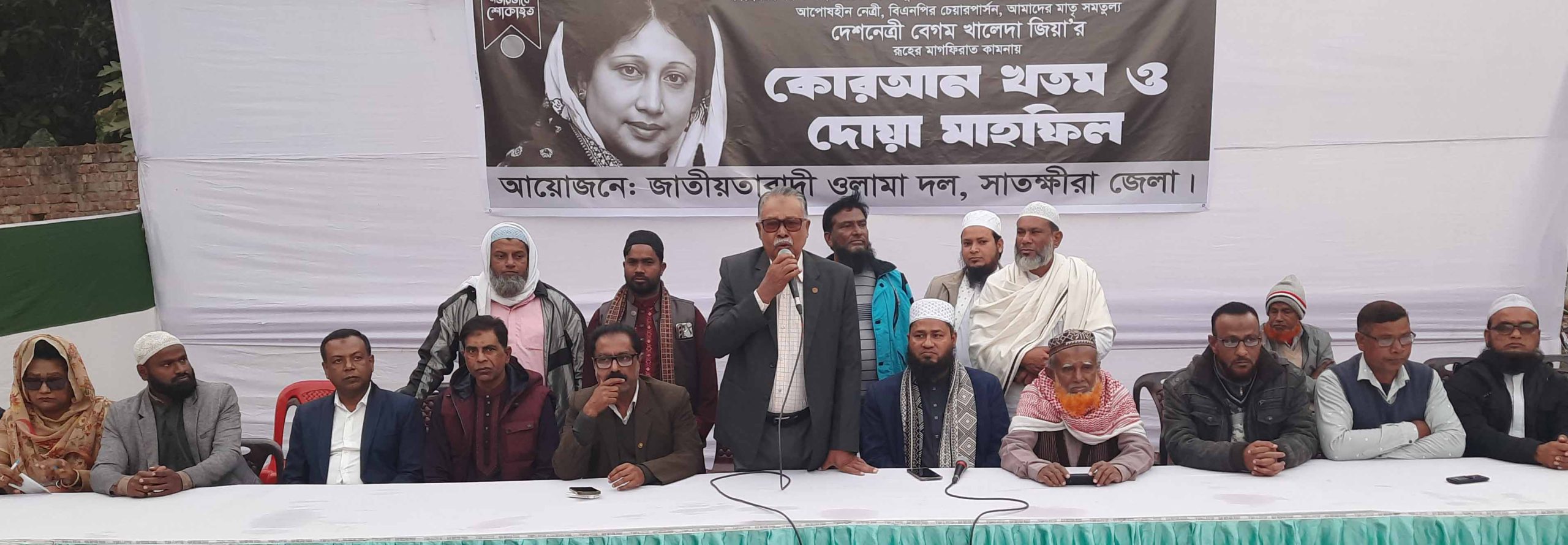সাতক্ষীরার জেলা ওলামা দলের উদ্যোগে সাবেক প্রধানমন্ত্রী ও বিএনপি চেয়ারপার্সন বেগম খালেদা জিয়ার রুহের মাগফিরাত কামনায় শনিবার (১০ জানুয়ারী) বিকেলে নিউ মার্কেট চত্বরে কোরআন খতম ও দোয়া মাহফিল অনুষ্ঠিত হয়েছে। জেলা ওলামা দলের সভাপতি মাওলানা আনিসুর রহমান আজাদীর সভাপতিত্বে অনুষ্ঠানে প্রধান অতিথি হিসেবে বক্তব্য রাখেন সাতক্ষীরা-২ (সদর-দেবহাটা) আসনের বিএনপি মনোনীত বিস্তারিত