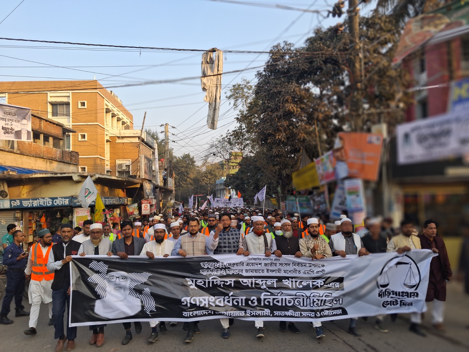 বাংলাদেশ জামায়াতে ইসলামী ১১ নম্বর ঝাউডাঙ্গা ইউনিয়ন শাখার উদ্যোগে মহিলা সমাবেশ অনুষ্ঠিত হয়েছে। বৃহস্পতিবার (২২ জানুয়ারি) সকাল সাড়ে দশটায় ঝাউডাঙ্গা বলফিল্ড মাঠে এ সমাবেশের আয়োজন করা হয়। সমাবেশে প্রধান অতিথি হিসেবে উপস্থিত ছিলেন সাতক্ষীরা-২ (সদর ও দেবহাটা) আসনের জামায়াতে ইসলামী মনোনীত সংসদ সদস্য প্রার্থী মুহাদ্দিস আব্দুল খালেক। বিশেষ অতিথি হিসেবে উপস্থিত ছিলেন জেলা জামায়াতের কর্মপরিষদ সদস্য অধ্যক্ষ মাওলানা আব্দুল বারী। এছাড়া স্থানীয় নেতৃবৃন্দও উপস্থিত ছিলেন। প্রধান অতিথির বক্তব্যে মুহাদ্দিস আব্দুল খালেক বলেন, আগামীর বাংলাদেশ হবে ইনসাফের বাংলাদেশ, যেখানে থাকবে না খোদার দারিদ্র, দুর্নীতি, টেন্ডারবাজি, চাঁদাবাজি বা ভূমি দূস্যতা। তিনি আরও বলেন, জামায়াতে ইসলামী ক্ষমতায় এলে মা-বোনরা নিরাপদে রাস্তায় চলাচল করতে পারবে। তাই আসন্ন জাতীয় সংসদ নির্বাচনে দাঁড়িপাল্লা প্রতীকের বিজয় নিশ্চিত করতে সকলকে কাঁধে কাঁধ মিলিয়ে কাজ করার আহ্বান জানান। সমাবেশের সভাপতিত্ব করেন জামায়াতে ইসলামী ১১ নম্বর ঝাউডাঙ্গা ইউনিয়ন শাখার আমির প্রফেসর মো. ইকবাল হোসেন। সমাবেশটি পরিচালনা করেন শাখার সেক্রেটারি মাওলানা মো: নুরুল বাসার।