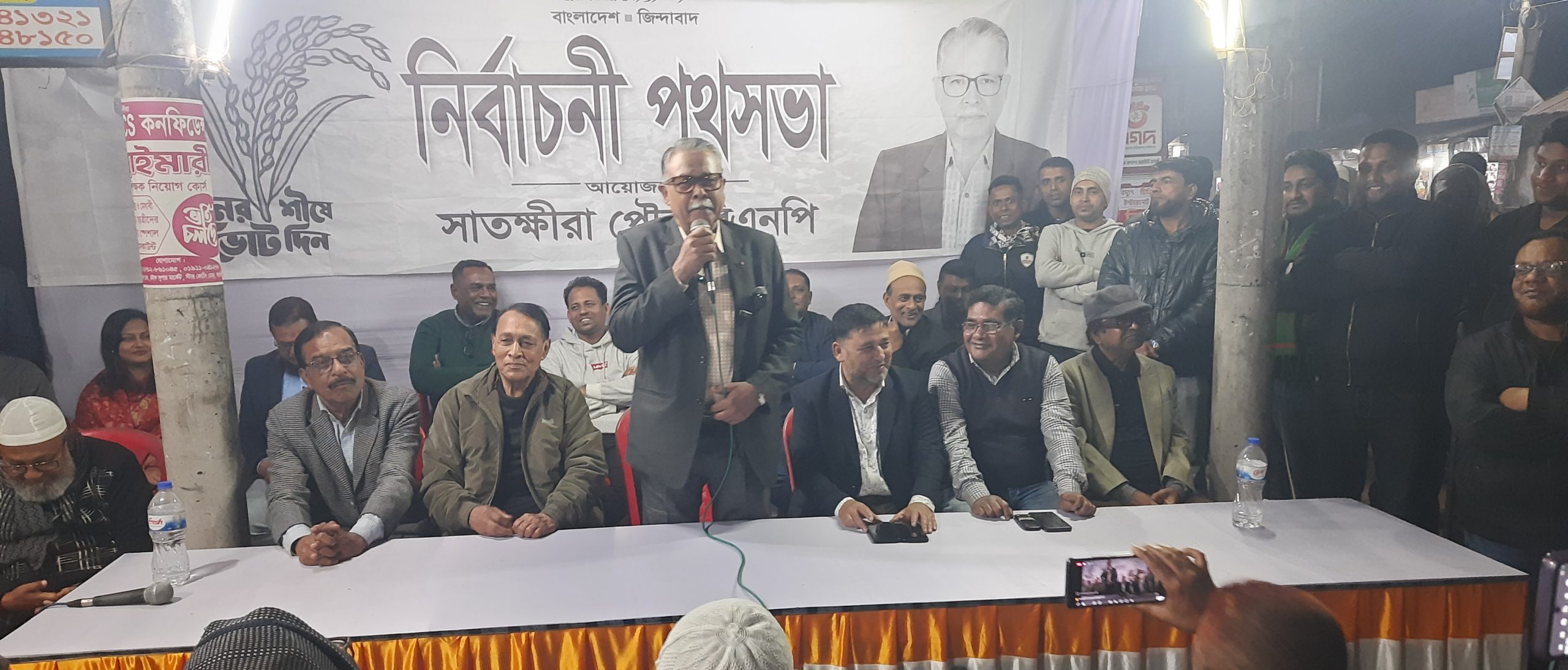 সাতক্ষীরা-২ (সদর-দেবহাটা) আসনে বিএনপি মনোনীত ধানের শীষের প্রার্থী আলহাজ্ব মোঃ আব্দুর রউফ শনিবার (২৪ জানুয়ারি) সন্ধ্যায় পুরাতন সাতক্ষীরা হাটখোলায় নির্বাচনী
