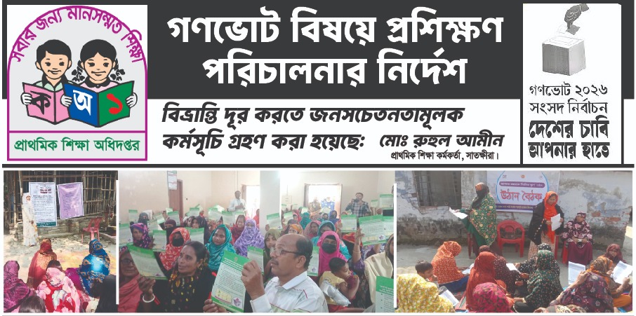 সরকারি প্রাথমিক বিদ্যালয়ে সহকারী শিক্ষক নিয়োগ পরীক্ষা–২০২৫ উপলক্ষে সাতক্ষীরা জেলায় একযোগে ৩২টি কেন্দ্রে লিখিত পরীক্ষা অনুষ্ঠিত হবে ৯ জানুয়ারি শুক্রবার।